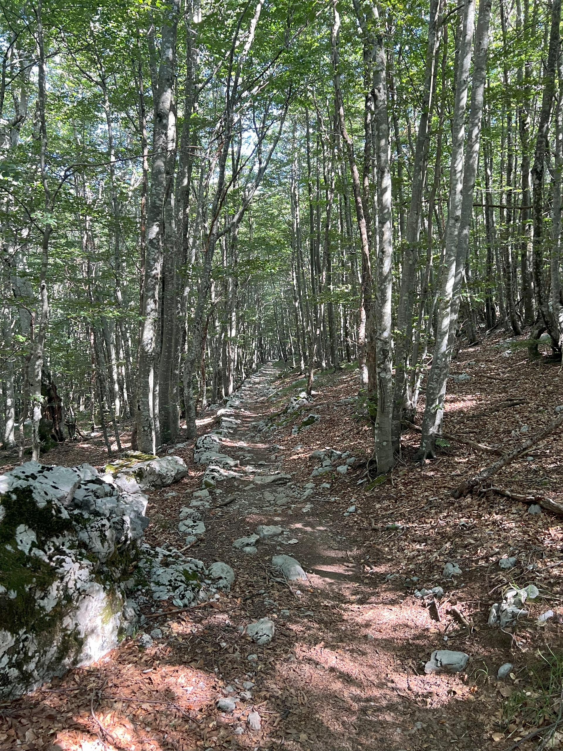 Nakon cca 2,5 sata hodanja dolazimo do Rossijeve kolibe, planinarskog skloništa s prekrasnim vidikom na otok Rab.